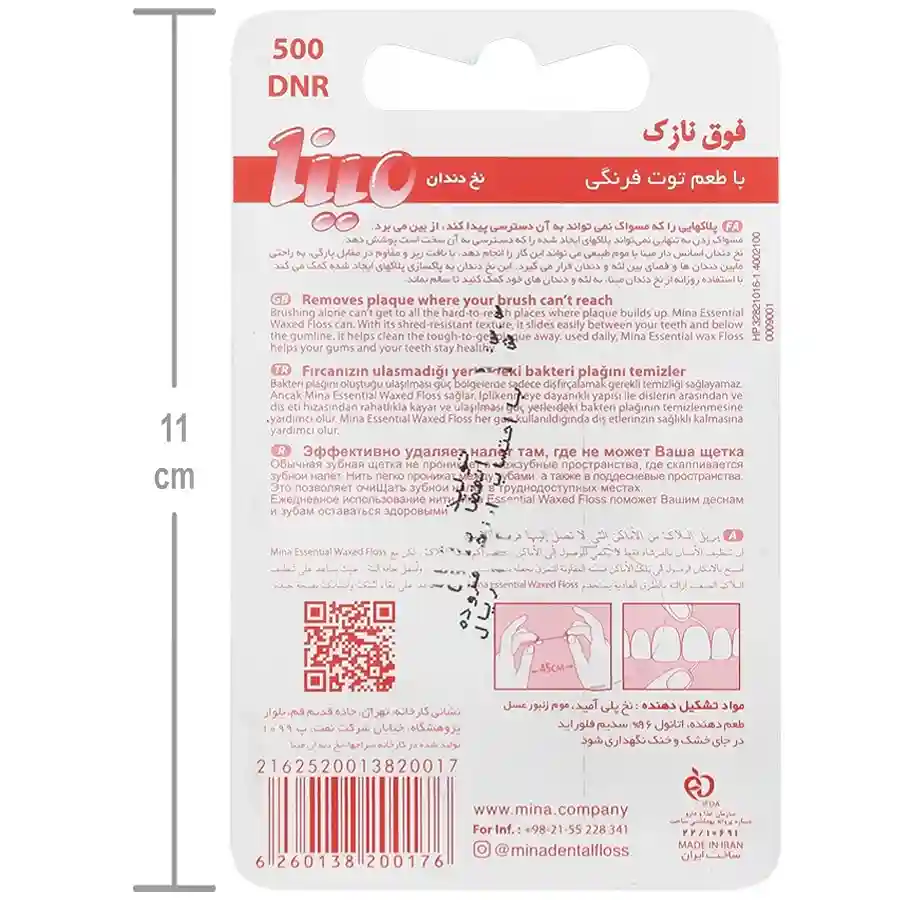 نخ دندان توت‌فرنگی مینا مدل Ultra Thin با موم طبیعی و فلوراید | ضد پلاک و خوشبوکننده دهان