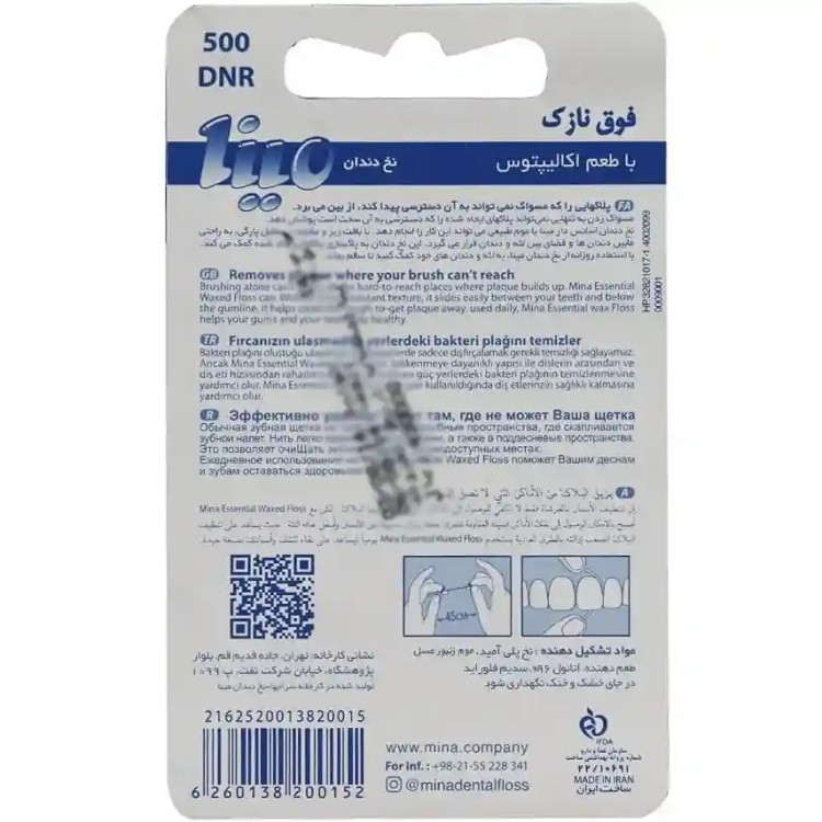 نخ دندان فوق نازک مینا با طعم اکالیپتوس و موم طبیعی