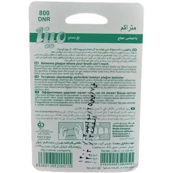 نخ دندان مینا با اسانس نعنا، می تواند به زدودن پلاک های دندانی کمک کرده و باعث از بین رفتن بوی بد دهان و جلوگیری از پوسیدگی دندان ها و ایجاد حفره در دندان ها گردد.